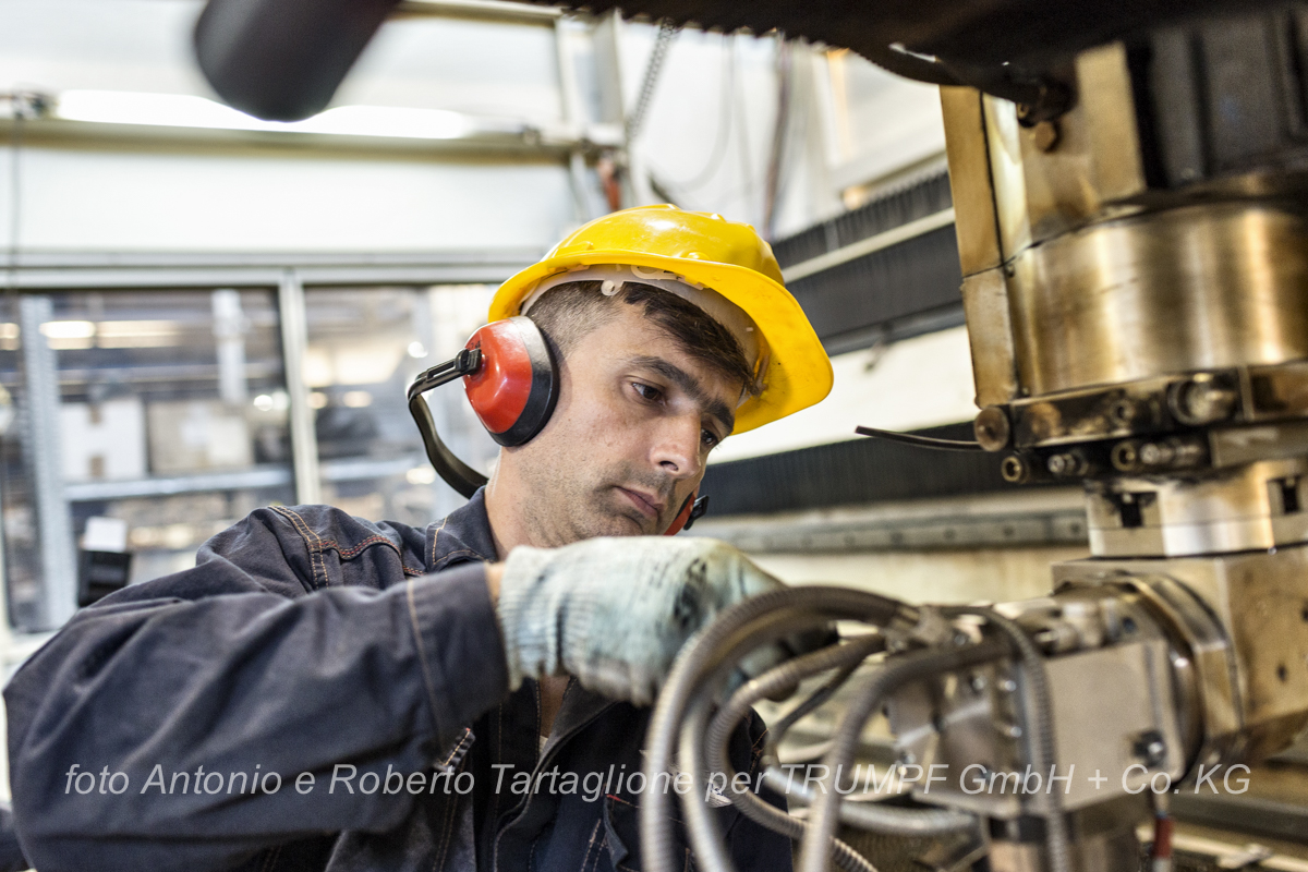 Elfim (Gravina di Puglia BA) operatore al lavoro su una macchina a laser Trumpf (servizio per il Brand Magazine “Laser Community”) 2016