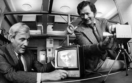 1974 Willard S. Boyle, left, and George E. Smith in posa nei laboratori Bell con un prototipo di macchina fotografica dotata di sensore CCD da loro inventato (Lucent Technologies Bell Labs) http://uk.businessinsider.com/digital-photography-revolution-2015-4?IR=T