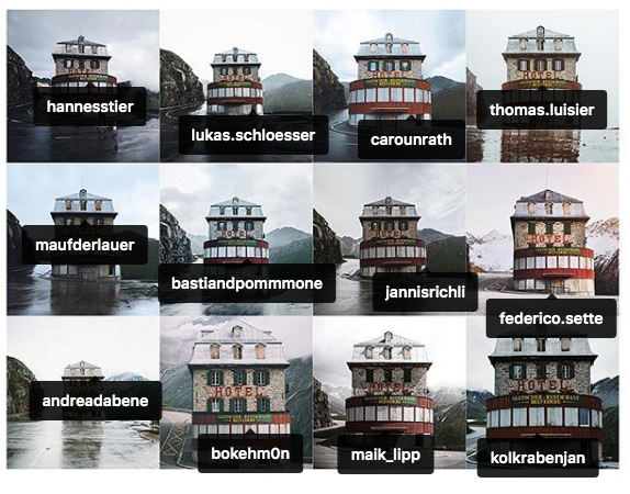 Quando poi la velocità di creazione cresce vertiginosamente, insieme alla possibilità di confrontarsi in tempo reale con milioni di immagini, il fenomeno della ripetizione si accentua. Ho parlato prima di “temi” fotografici, intendo i pretesti o le occasioni che le persone trovano quando fotografano per divertimento, come fanno tantissimi utenti di Instagram (tra cui io). A volte ovviamente è la location che detta le analogia di inquadrature, altre volte è una tendenza del momento o l’influenza di un autore famoso. Il primo autore che mi è venuto in mente vedendo il feed di @insta_repeat è stato quello di Gilles Deleuze, che con il suo “Differenza e Ripetizione” (testo più citato che letto) ha accompagnato la mia generazione che alla fine degli anni ’70 cercava di allontanarsi (in tutti i sensi) da casa. A questo testo di Deleuze è spesso associato, in rete, una immagine di Jan Köpper. L’artista ha dedicato molte sue opere (principalmente installazioni) al tema della ripetizione. “Il (mio) lavoro è il risultato di un intenso studio nel processo inconscio della ripetizione; una forza che che influisce sulle fondamenta stessa della nostra società, a cui la cultura o occidentale risponde con una ricerca senza fine dell’originalità” (Jan Köpper )
