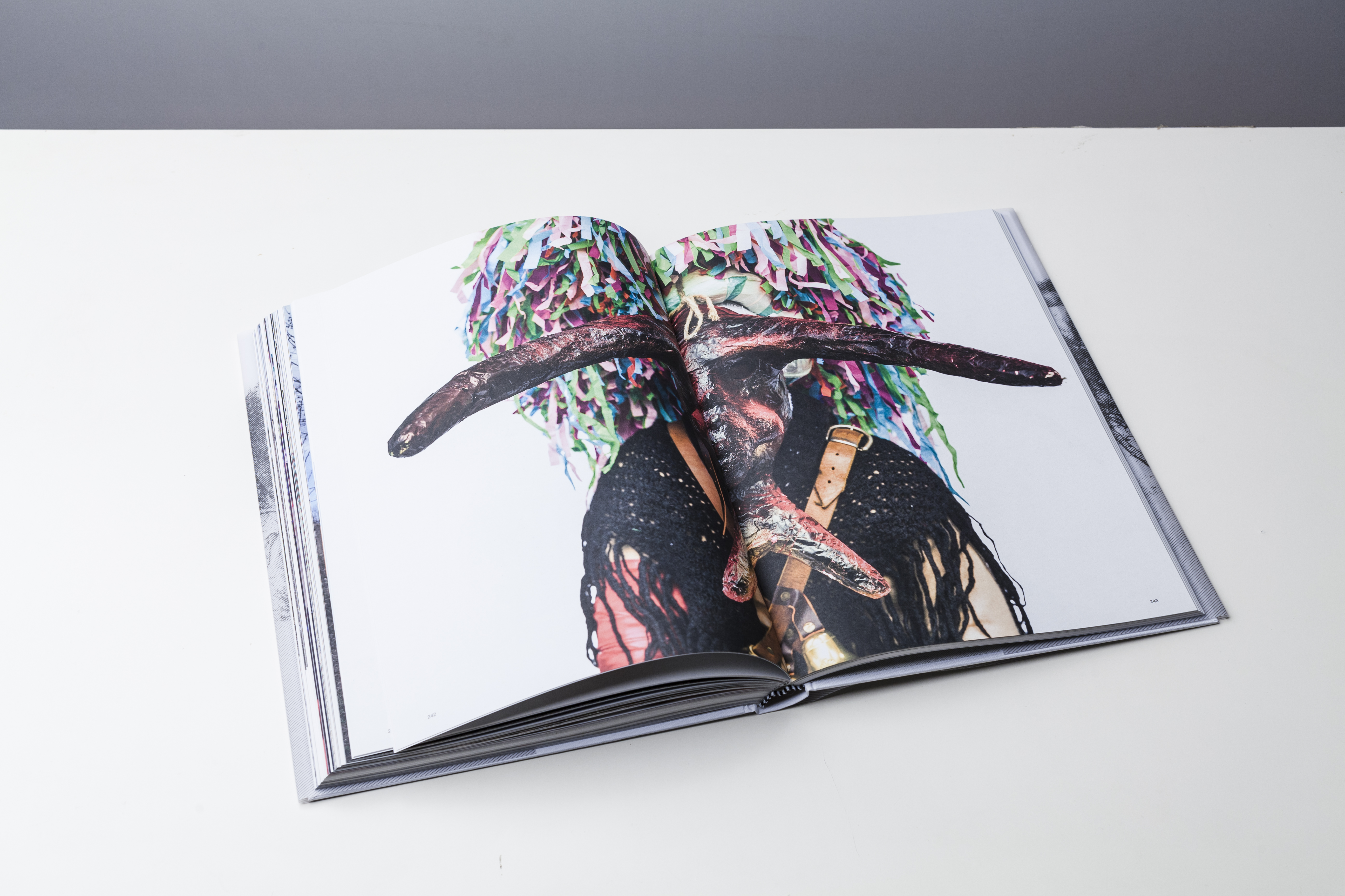 Mi sono trovato in questi giorni a ragionare sul colore impaginando il il nostro progetto editoriale “Winter Rites”. Qui sotto un esempio di doppia pagina dove sono rappresentate due maschere del Carnevale di Tricarico, a sinistra con fondo bianco a desta con fondino. Variando il colore dello fondino si vivacizza l’impaginazione, interrompendo la sequenza delle pagine bianche.