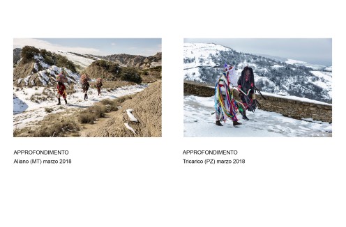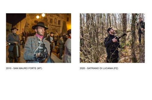 Siamo partiti dal nostro interesse per il rito dei “Campanacci” a San Mauro Forte (dove ci siamo recati più volte a partire dal 2009) per poi allargare la ricerca agli altri Comuni che fanno parte della Rete dei Carnevali Lucani. Abbiamo iniziato così a percorrere la Regione in lungo e in largo nei mesi invernali per seguire gli eventi veri e propri (sopratutto la ricorrenza di Sant’Antonio Abate ed il Martedì Grasso) e lavorare su vari approfondimenti (ritratti su fondale bianco, messe in scena di tipo teatrale, paesaggi e così via). Nel 2020 abbiamo approfittato della pausa forzata dovuta alla pandemia per dedicarci finalmente alla selezione ed all’editing delle foto, realizzando un mock-up a grandezza naturale con l’impaginazione definitiva e qualche breve testo. Abbiamo poi avuto l’onore di avere l’appoggio di Ferdinando Mirizzi, antropologo, docente presso l’Università della Basilicata, che ha accettato di scrivere un suo testo che arricchisce il volume.