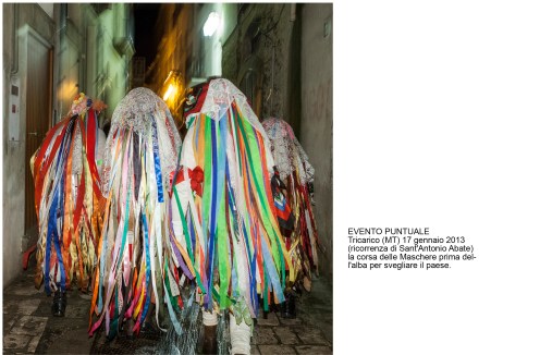 2 A volte la ricerca di elementi incontaminati deriva dalla acuta nostalgia per un mondo immaginato come migliore o quanto meno più vivibile. E’ difficile immaginare un incappucciato a Francavilla Fontana oppure una maschera Cornuta di Aliano di fronte all’insegna al neon di un Supermercato oppure un Bancomat. Ci sono migliaia di inquadrature possibili che non prendiamo neanche in considerazione forse perchè la ricerca di una inquadratura “pulita” rivela la nostra nostalgia per un mondo ormai scomparso e la tensione verso un diverso modo di vita.