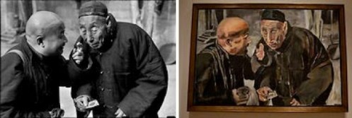 Segnaliamo un avvenimento che in questi giorni sta facendo molto discutere negli Stati Uniti. Il famoso cantautore Bob Dylan (proprio lui) sta esponendo in uno dei luoghi più prestigiosi di New York, su Madison Avenue, una serie di dipinti, “The Asia Series” (presso la Gagosian Gallery dal 20 settembre al 22 ottobre). La presentazione ci dice che sono una riflessione visiva sui suoi viaggi in Giappone, Cina, Vietnam e Corea … peccato che, come già molti bloggers hanno rilevato (citiamo il divertente death+taxes e il bellissimo AphotoEditor ) le foto siano delle citazioni letterali di fotografie, alcune tra l’altro di autori del calibro di H. Cartier-Bresson oppure Dimitri Kessel. In pratica è stata dipinta una foto, probabilmente stampata sulla tela stessa. Ovviamente l’utilizzo della fotografia da parte dei fotografi risale alle origini stesse della sua invenzione. Quello che ha stupito è forse la maniera, secondo me un pò sfrontata, della appropriazione di foto altrui, anche se è vero che viviamo nell’epoca del “copia e incolla”. Questo ci permette di avanzare alcune considerazioni: