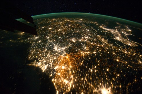 Una bella iniziativa della Nasa ha permesso in questi ultimi mesi di godere dello spettacolo della terra che scorre lentamente sotto i nostri occhi, in sequenze (specialmente notturne) di incredibile suggestione che mi hanno fatto pensare ad una poesia di Ingeborg Bachmann (Nachtflug … vedi sotto). Si tratta di video che circolano in moltissime versioni su You Tube e Vimeo, tutte ricavate dal materiale fotografico scattato da un austronauta a circa 300 km di altezza ! dal 15 al 19 settembre i video nelle varie versioni hanno toccato un milione di visualizzazioni (fonte: Huffington Post del 19 settembre 2011). Tra le versioni più belle quella dello scenografo e videomaker tedesco Michel Konig, che ha elaborato in maniera superba il materiale.della NASA. E’ stato un pò più faticoso risalire all’origine dell’eccezionale materiale fotografico. La storia in breve è questa: durante il suo soggiorno di 6 mesi (terminato da poco) a bordo dell’ISS (international Space Station) l’astronauta Ron Garan ha ricevuto via mail un suggerimento dalla sua insegnante di fotografia alla Nasa, Katrina Willoughby: perchè non provare la tecnica del “time lapse” o passo uno, lassù nello spazio ? La tecnica consiste nello scattare fotografie ad intervalli di tempo regolari (gli intervalli possono variare da pochi secondi a parecchie ore: in questo caso l’intervallo è stato generalmente di tre secondi); poi si montano questi fotogrammi (con l’aiuto magari di piccole dissolvenze o altri accorgimenti) in un video che scorre a 25 ftps, simulando il movimento della camera o del soggetto o di tutti e due (come in questo caso). La storia è raccontata da Ron Garan nel suo blog “Fragile Oasis” (dove la fragile oasi è ovviamente la nostra madre Terra). L’astronauta ha esposto l’idea a Peter Gabriel in una conversazione “spaziale” ed ha ottenuto il permesso di usare un paio di sue canzoni (“Downside up” e “Down to Earth“). Questa semplice serie di eventi è stata poi più o meno deformata nella concatenazione dei rimandi tra un blog e l’altro. Ad esempio la macchina fotografica usata, una rispettabile Nikon D3S è diventata in alcuni post una “speciale camera in grado di scattare in basse condizioni di luce” oppure “camera con abilità di ripresa in basse condizioni di luce”. In realtà Ron Garan ha effettuato delle semplici operazioni fotografiche, spiegate da lui stesso nel post già citato, operazioni banali ma che nella “nebbia” generale che circonda spesso la fotografia, proprio perchè se ne parla tanto, sono diventate quasi magiche: scelta dell’inquadratura, scelta della focale (grandangolo), impostazione degli ISO (1.000 e oltre), impostazione del diaframma (tutta apertura) e del fuoco (tutto in modalità manuale). Questo perchè la fotografia (digitale o no) necessita di studio e ragionamento; se si bypassano queste fasi, si ottengono comunque risultati corretti grazie agli automatismi, ma il tutto finisce lì …