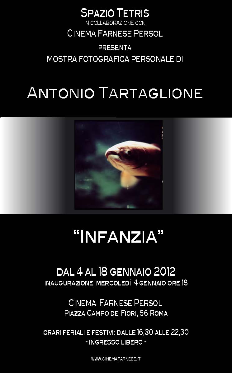 Giovedì 4 dicembre 2012 alle ore 18, a Roma presso il Cinema Farnese Persol, sarà inaugurata la mostra dal titolo ‘Infanzia’ del fotografo Antonio Tartaglione. La mostra ‘ INFANZIA fotografie di Antonio Tartaglione’ rimarrà aperta al pubblico fino al 18 gennaio 2012.