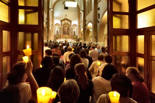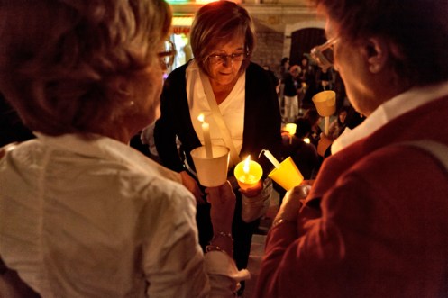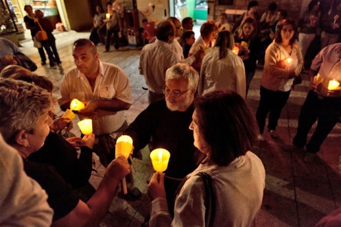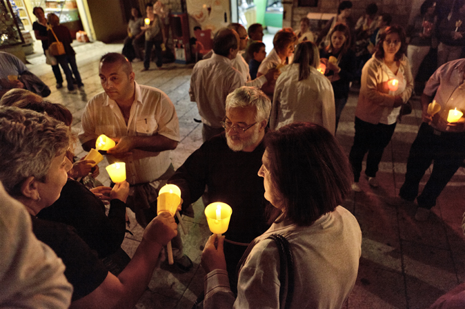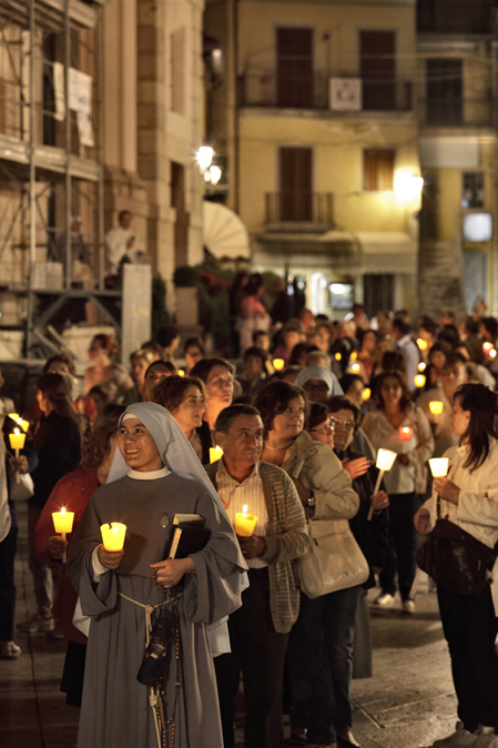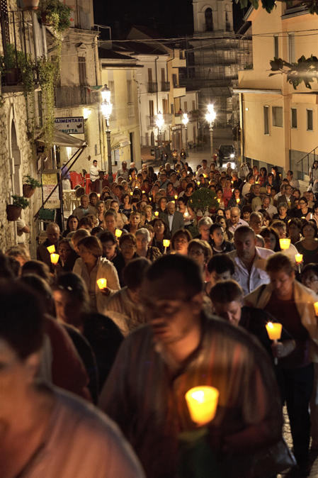 Saint Pio was born in Pietrelcina (25/05/1887) and died on 23th septemeber 1968 in San Giovanni Rotondo. He was sanctified in June 2002 and the 23th september has been, since then, the official date for his commemoration. Even if Pietrelcina is less known than San Giovanni Rotondo, it is a fascinating village up on the hills near Benevento were it is still possible to feel the simple faith of the Friars Minor Capuchin. The pilgrims can visit the houses were Padre Pio spent is childhood with his poor family. Yesterday, on the eve of the anniversary, believers gathered in front of the church of Santa Maria degli Angeli at 09.00 pm. They lighted the candles and went on, singing, to the Capuchins Monastery, were they went on praying until midnight.