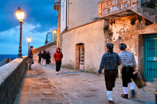Gruppi di suonatori improvvisati di Campanaccio, percorrono le strade del paese compiendo tre giri intorno alla chiesa di San Rocco, dov’ è custodita l’ immagine di S. Antonio Abate, per poi raccogliersi in piazza vicino alla bella torre Normanna, ora in ristrutturazione.
